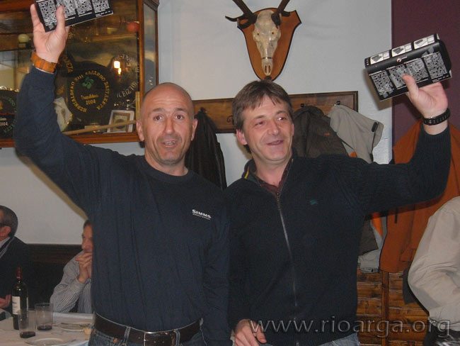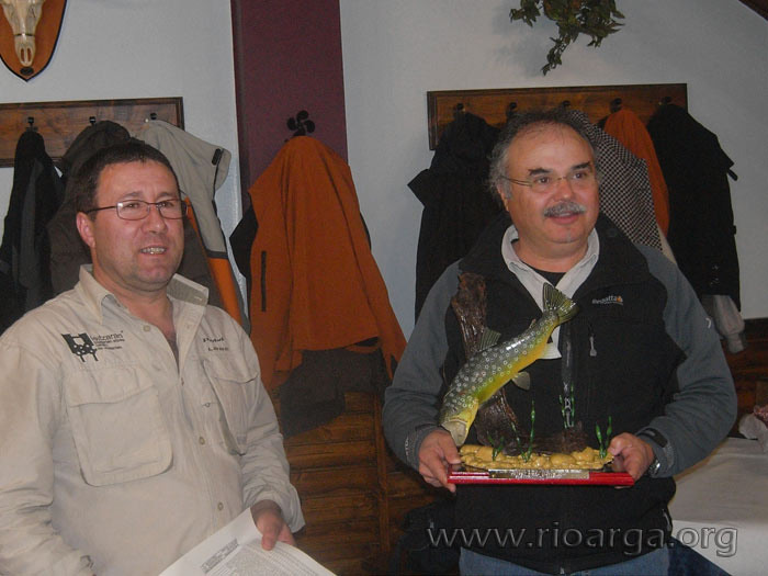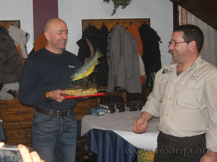 Durante la entrega de trofeos quedó bien patente la satisfacción unánime de todos los participantes que se materializó en largos aplausos para todos los mencionados en general y para Patxi Urruzuno en particular. El primer premio se lo llevaron, como no, dos locales, Unai Urkia y Olain Irizar, con gran ventaja sobre los segundos, los catalanes Jordi Oliveras y Xabier Casamayor. En tercer lugar quedaron otros dos autóctonos, Arkaitz Martín y Mikel Zubeldía. La pieza mayor la pescó el francés Paco Alguacil, pareja de Robert Escaffre, y midío 57 cm. y el trofeo consistió en una de esas fantásticas truchas pintada a mano por Natur-fish.