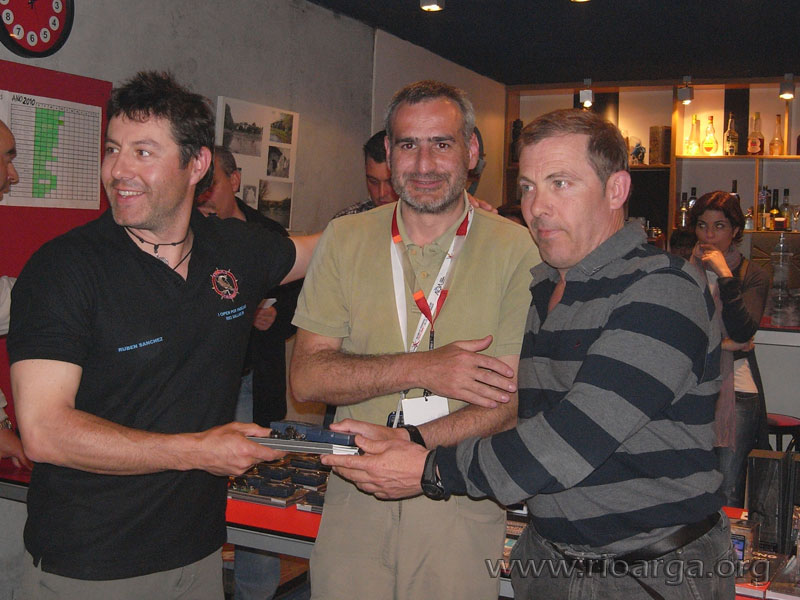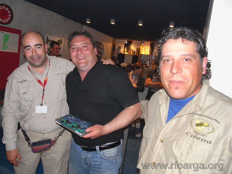 Los triunfadores indiscutibles del concurso fueron Jordi Oliveras ¿O habría que decir ya Olveiras, en galego? y David Arcay. Este también lograría el mayor número de peces, CUARENTA Y CINCO o lo que es lo mismo, una media de 5.5 comunes por hora, lo que no está nada mal y en cuanto a la pieza mayor creo que de 49 cm., no estoy seguro, la capturó Javier Del Río, un loco de la pesca en lago y loco también a secas