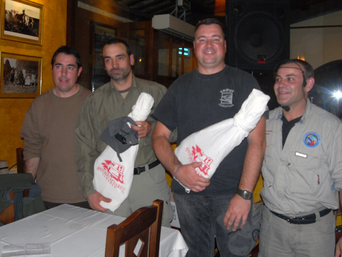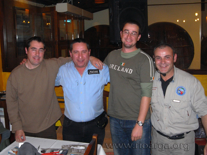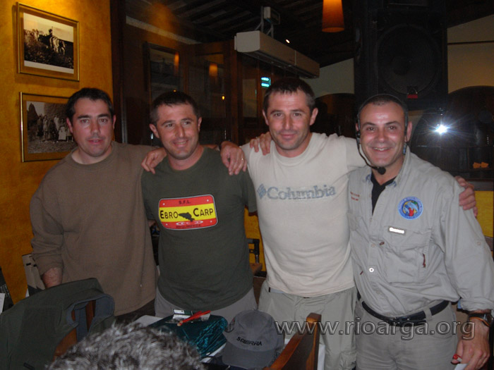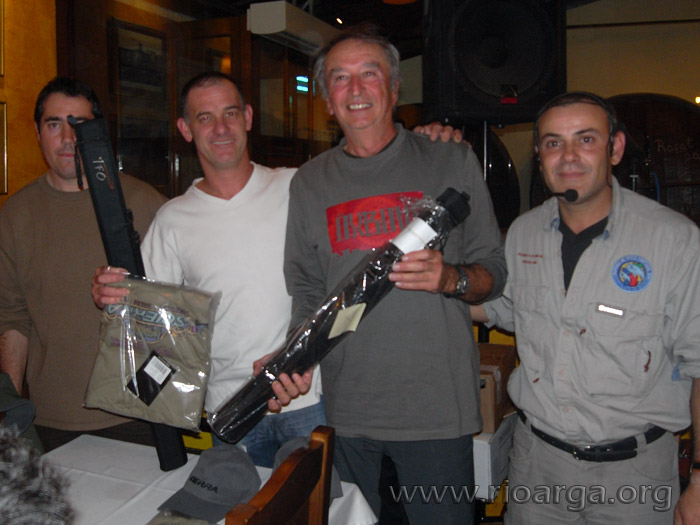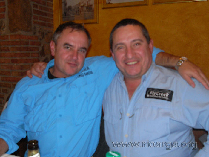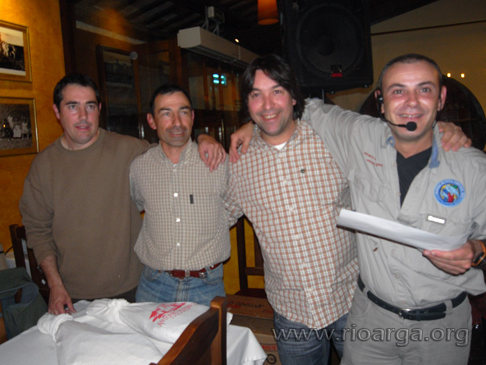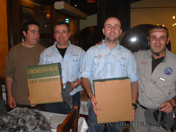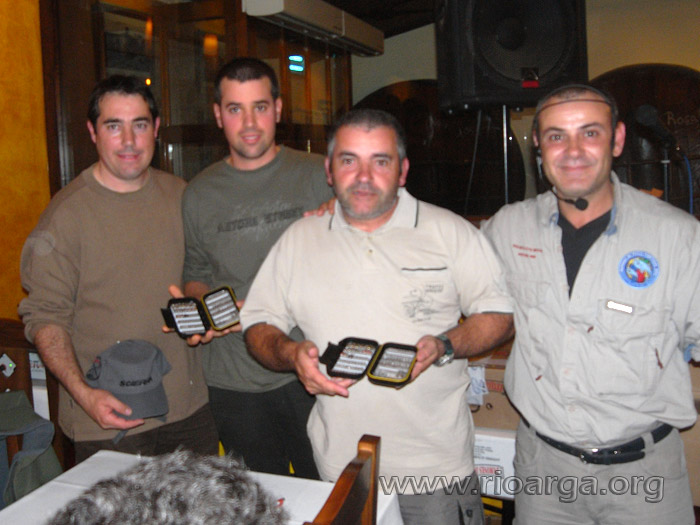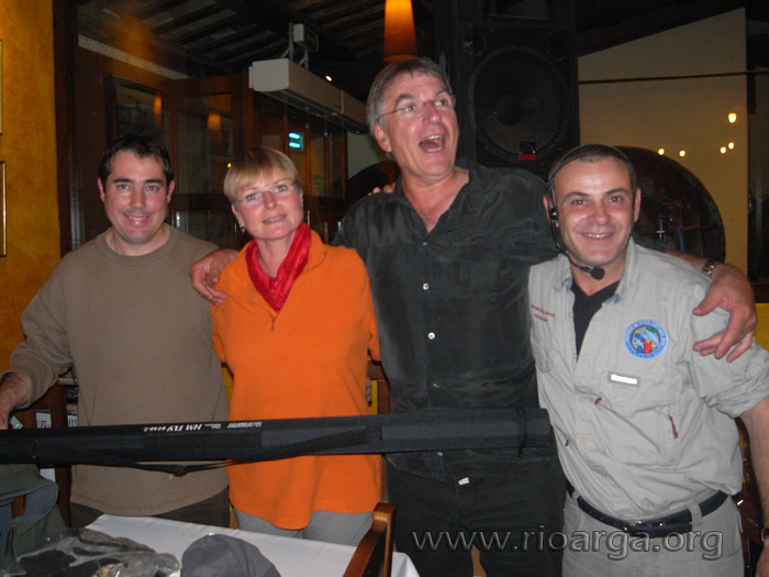 Todos los presentes tuvimos la oportunidad de conocer a Robin ("alaskarobinfishing.net") pero más estrechamente nosotros, los navarros, ya que tendríamos la suerte de compartir casi todo el fin de semana con este auténtico aventurero. Robin es un riojano que ha organizado un campamento de pesca en Alaska, cerca de Anchorage, pensado en los gustos de los pescadores españoles, con ríos vadeables e innumerables especies que pescar. Actualmente se encuentra en promoción por lo que sus precios son tales que hasta han levantado sospechas. Allá cada cual pero las oportunidades las pintan calvas, los amigos que visitamos Eslovakia este verano ya nos hemos apuntado para julio. No dejéis de visitar su web y llamadle al móvil que aparece para cualquier consulta, os atenderá encantado. La pareja ganadora, entre muchos otros regalos se llevaría uno de estos viajes a Alaska y una colección de moscas de "Mikelfly" Elexpuru.