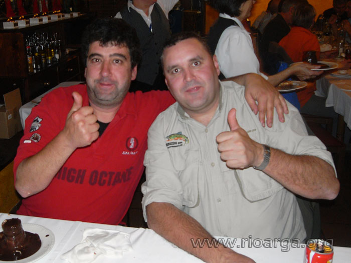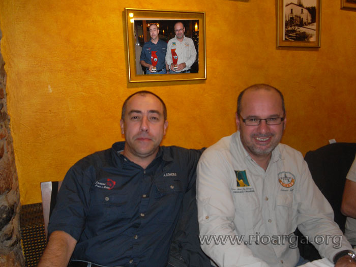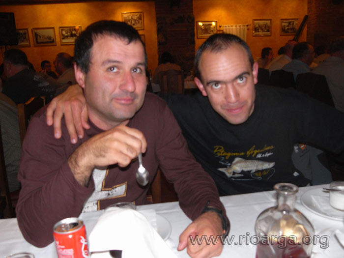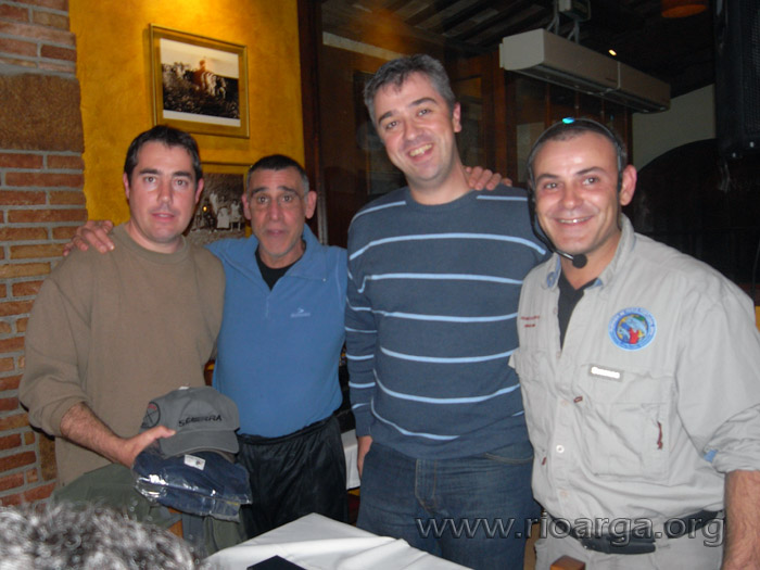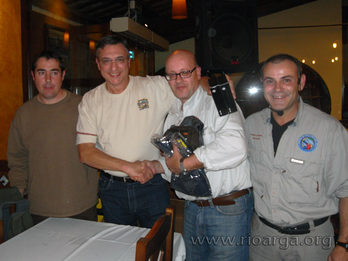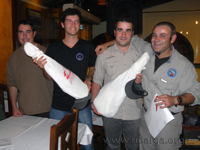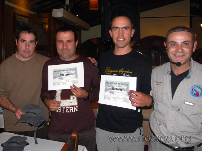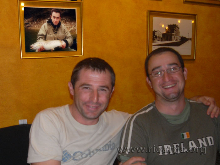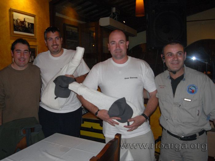 Todos los presentes tuvimos la oportunidad de conocer a Robin ("alaskarobinfishing.net") pero más estrechamente nosotros, los navarros, ya que tendríamos la suerte de compartir casi todo el fin de semana con este auténtico aventurero. Robin es un riojano que ha organizado un campamento de pesca en Alaska, cerca de Anchorage, pensado en los gustos de los pescadores españoles, con ríos vadeables e innumerables especies que pescar. Actualmente se encuentra en promoción por lo que sus precios son tales que hasta han levantado sospechas. Allá cada cual pero las oportunidades las pintan calvas, los amigos que visitamos Eslovakia este verano ya nos hemos apuntado para julio. No dejéis de visitar su web y llamadle al móvil que aparece para cualquier consulta, os atenderá encantado. La pareja ganadora, entre muchos otros regalos se llevaría uno de estos viajes a Alaska y una colección de moscas de "Mikelfly" Elexpuru.