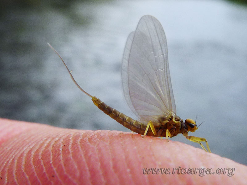 La actividad de los peces acusó tan brusco cambio de tiempo, de manera que apenas disfrutamos de las cebadas de otros años. Tampoco los tricópteros nos ofrecieron el espectáculo al que nos tenían acostumbrados con sus vuelos nupciales apelotonados en los prados para después dejarse caer en las raseras provocando un frenesí entre las pintonas, no obstante diversas efémeras y algunos tricos eclosionaban de vez en cuando para elevar nuestro ánimo y llenar el buche de los vencejos que con el temporal se vieron obligado a alimentarse a ras del río.