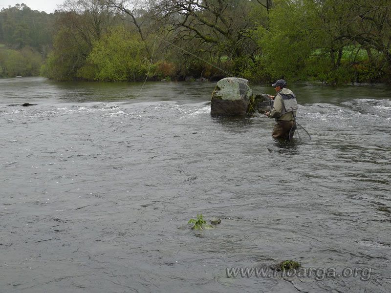 Así que, en otras palabras, nos dimos la gran paliza en coche para pescar dos días bajo un temporal de lluvia y viento porque unos amigos que se están pegando de tortas con casi todo el mundo para salvar una de las joyas fluviales de Galicia organizan un concurso de pesca desde hace cuatro años como medio para llamar la atención sobre un problema que afecta ya por desgracia a todos los ríos y pescadores de España en mayor o menor medida.