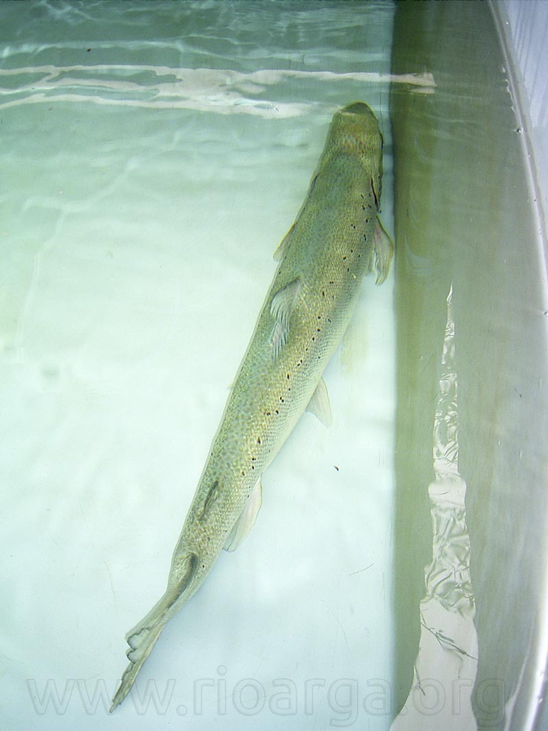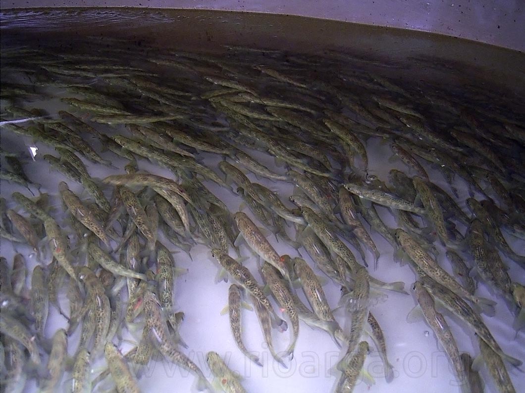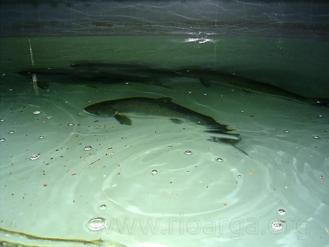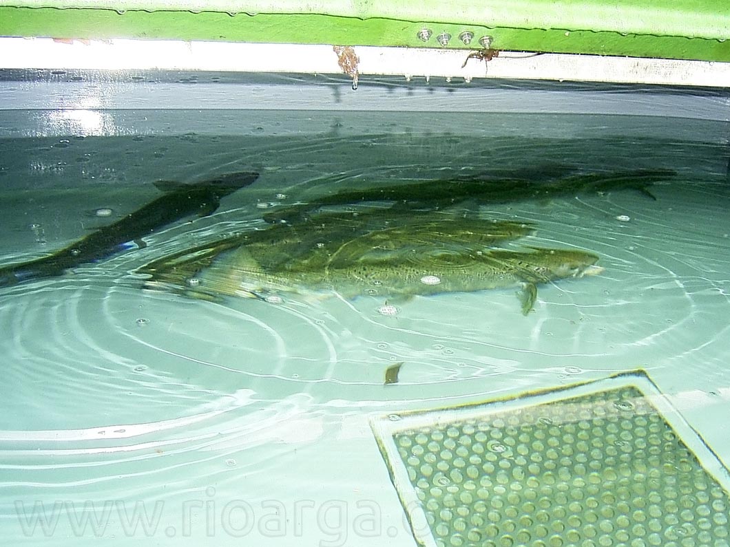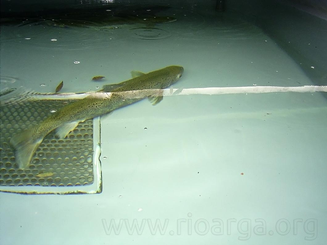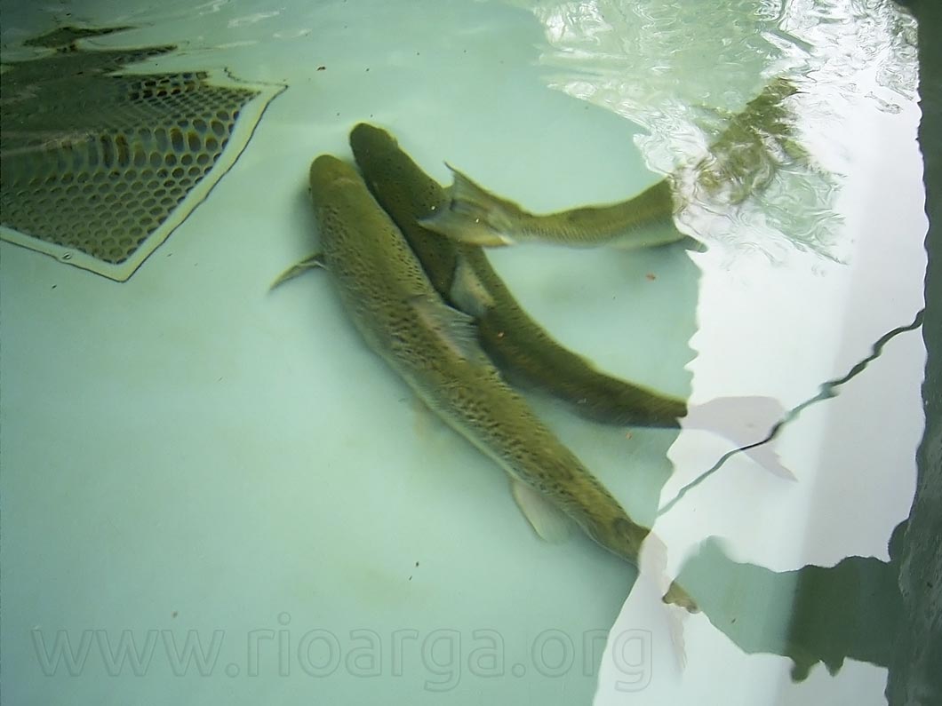 G.- Yo creo que esto esta ideado un poco de las piscifactorías comerciales del salmón que es criar el esguín y cuando ya esta plateado para echarlos al río para que bajen al mar, ellos los meten en balsas flotantes, entonces automáticamente es seguir dándoles de comer, yo creo que esta copiado de hay.Estos son salmones de dos inviernos de mar. En el río Bidasoa nos había bajado alarmantemente el censo del salmón de dos inviernos de mar, entonces pensamos en una solución y esta demostrado que genéticamente alevines que proceden de salmones con dos inviernos de de mar, un 80% nos vuelve con dos inviernos de mar, más que nada para que no siguiera en decrecimiento los salmones de 2 inviernos es lo que hacemos: usar reproductores con dos inviernos de mar.