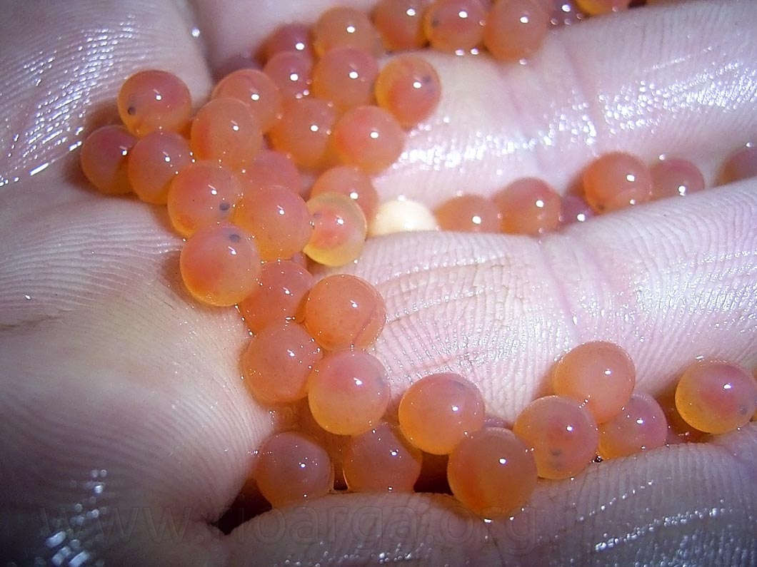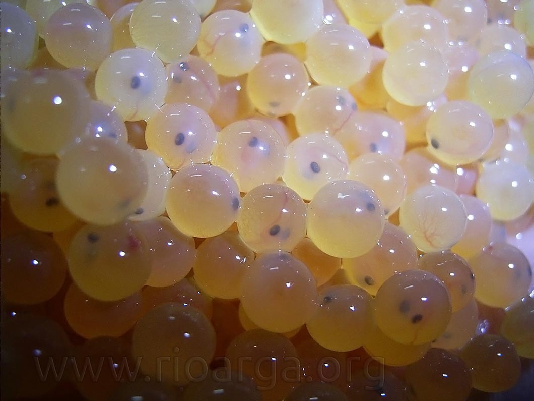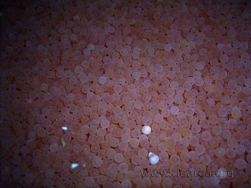 G. Bueno ahora tiene la hueva, estas huevas son de las que hemos subido este año del río, estas están embrionadas