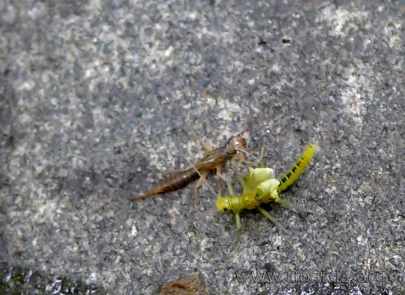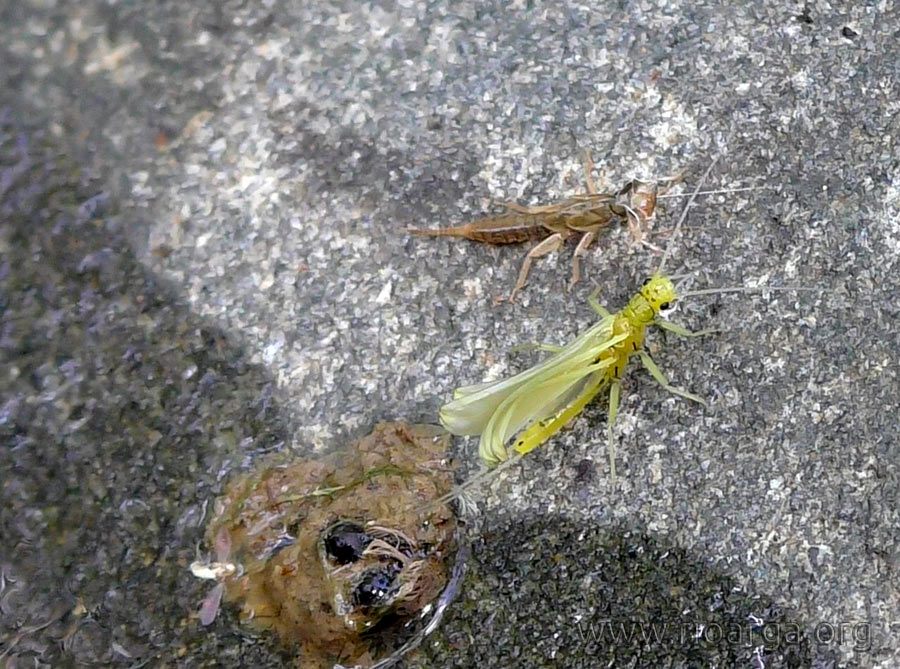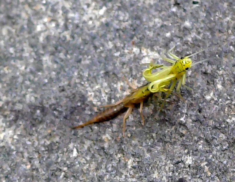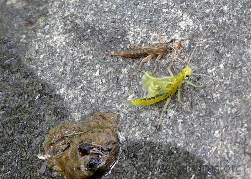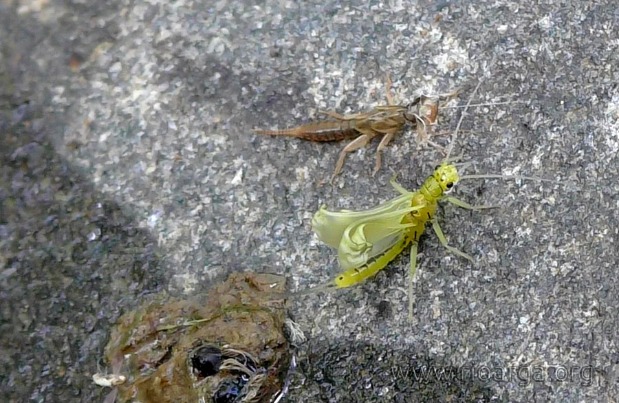 Vemos el paso de larva-ninfa a adulto de una chloroperla torrentium en el río Arga a la altura de Saigots, el año 2011 también publicamos otra transformación ene el río Irati, en esta ocasión con cámara de vídeo, al ser un insecto muy pequeño apuré al máximo posible el zoom y enfoque, si disponéis de un dispositivo en 4k, podréis verlo con mas detalle.